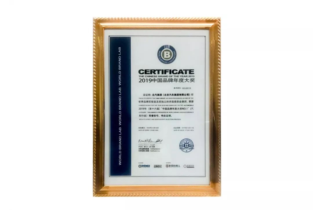 12月17日,業(yè)界權(quán)威機(jī)構(gòu)世界品牌實驗室(World Brand Lab)發(fā)布2019年“中國品牌年度大獎”,35個活躍在2019年度中國經(jīng)濟(jì)舞臺的領(lǐng)軍品牌入選。北汽集團(tuán)憑借卓越的品牌影響力,獲得2019年“中國品牌年度大獎NO.1”獎項。