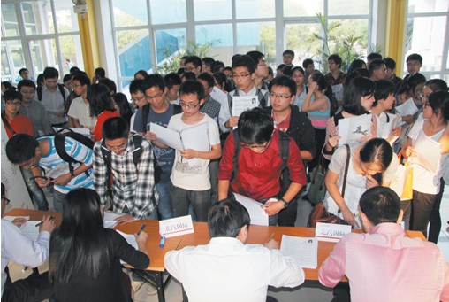 宣講會后,投遞簡歷和參加面試的隊伍排成了長龍,將報告廳外的走廊堵得水泄不通。有的同學(xué)為了這場招聘會準備了很久,西裝革履、志在必得;有的同學(xué)連中飯都沒吃,坐了3個多小時的車從城市的另一頭趕過來;有的同學(xué)參加完前一天北汽集團在同濟大學(xué)的宣講會,又趕來上海交大再次投遞簡歷,投奔北汽的決心堅定不移;還有的是情侶兩人一起來投報,希望能成為北汽的雙職工,在北汽研發(fā)基地的“銀色大廳”舉行集體婚禮……他們中的大多數(shù)人,都是成績優(yōu)秀的研究生甚至博士生。問起北汽最吸引他們的原因,大家眾口一詞地表示:不是薪水待遇,而是北汽“世界500強”的規(guī)模實力、令人向往的企業(yè)文化以及未來廣闊的發(fā)展前景。“這段時間舉行校園招聘會的企業(yè)很多,但是北汽是我的第一選擇!”浙大材料專業(yè)的研究生宋世燕說。