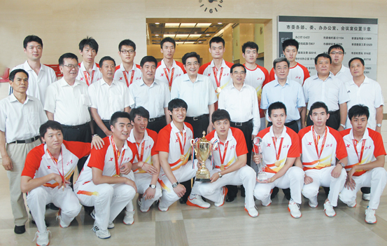 市委書記郭金龍、市長(zhǎng)王安順、北汽集團(tuán)黨委書記、董事長(zhǎng),北京汽車排球俱樂部董事長(zhǎng)張東升會(huì)見了剛剛獲得第12屆全運(yùn)會(huì)成年組男子排球決賽冠軍的北京男排全體隊(duì)員